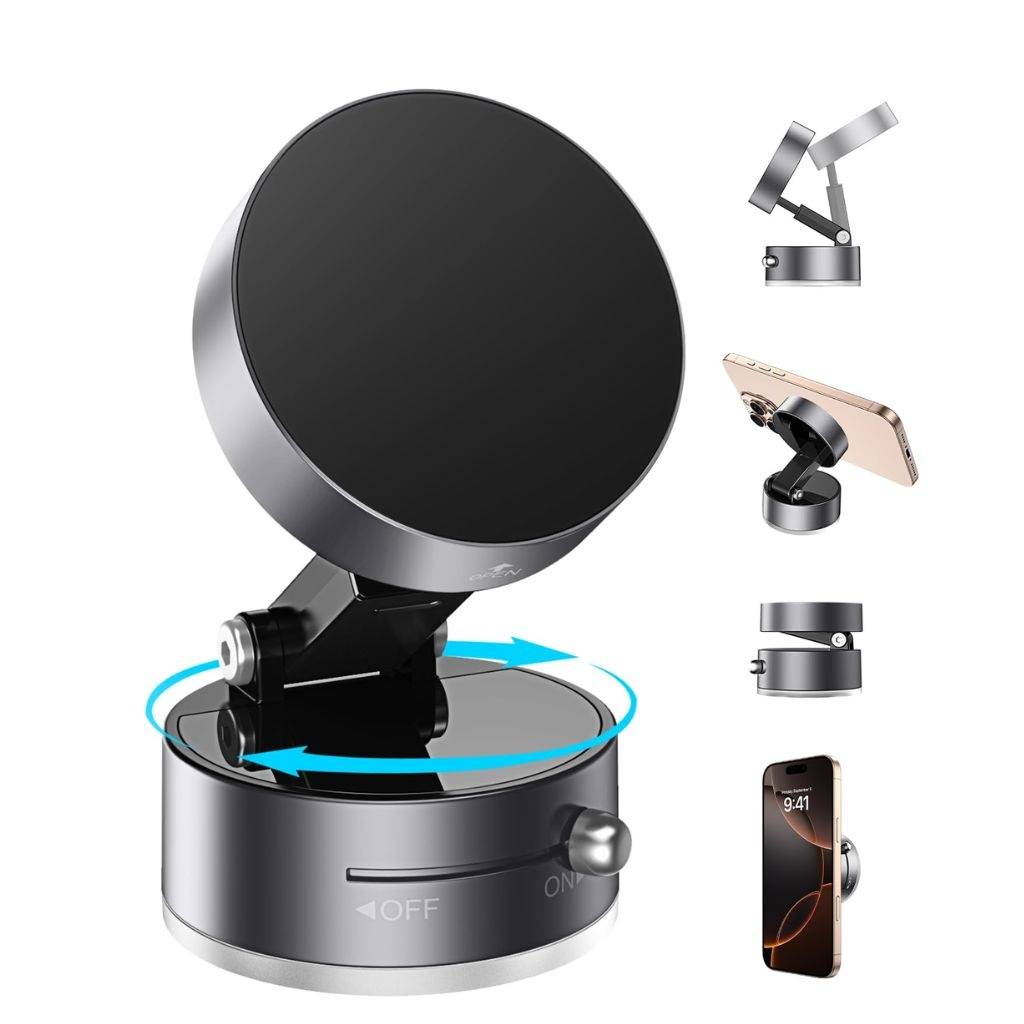 Este soporte vehicular magnético con ventosa es la solución ideal para colocar tu smartphone de forma cómoda y segura en el auto. Su base con ventosa de alta succión se adhiere firmemente al parabrisas o tablero, evitando deslizamientos incluso en caminos irregulares.
